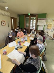 手芸、習字、音読、脳トレ等々職員と一緒に活動しています。